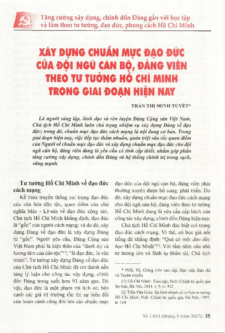 Xây dựng chuẩn mực đạo đức của đội ngũ cán bộ, đảng viên theo tư tưởng Hồ Chí Minh trong giai đoạn hiện nay