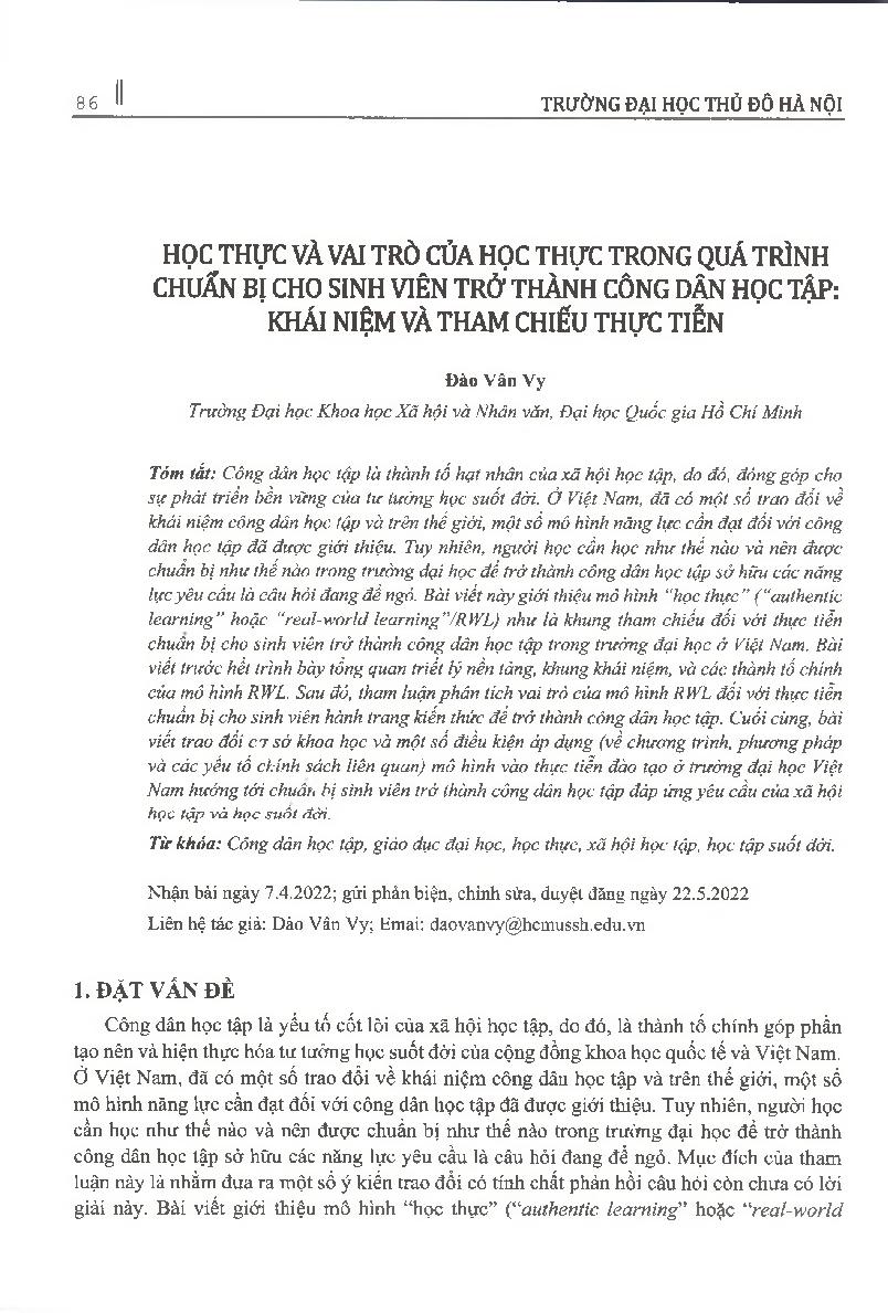 Học thực và vai trò của học thực trong quá trình chuẩn bị cho sinh viên trở thành công dân học tập: Khái niệm và tham chiếu thực tiễn = Authentic learning and the role of authentic learning in the preparation for students to become a learning citizen: Con