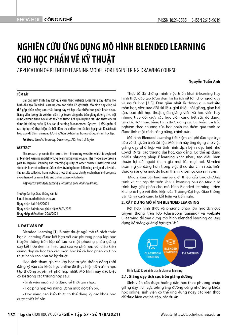 Nghiên cứu ứng dụng mô hình blended learning cho học phần Vẽ kỹ thuật = Application of blended learning model for Engineering Drawing course