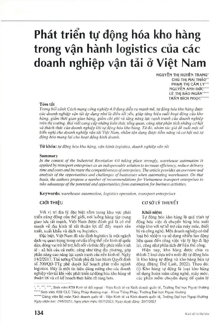 Phát triển tự động hóa cho hàng trong vận hành logistics của các doanh nghiệp vận tải ở Việt Nam