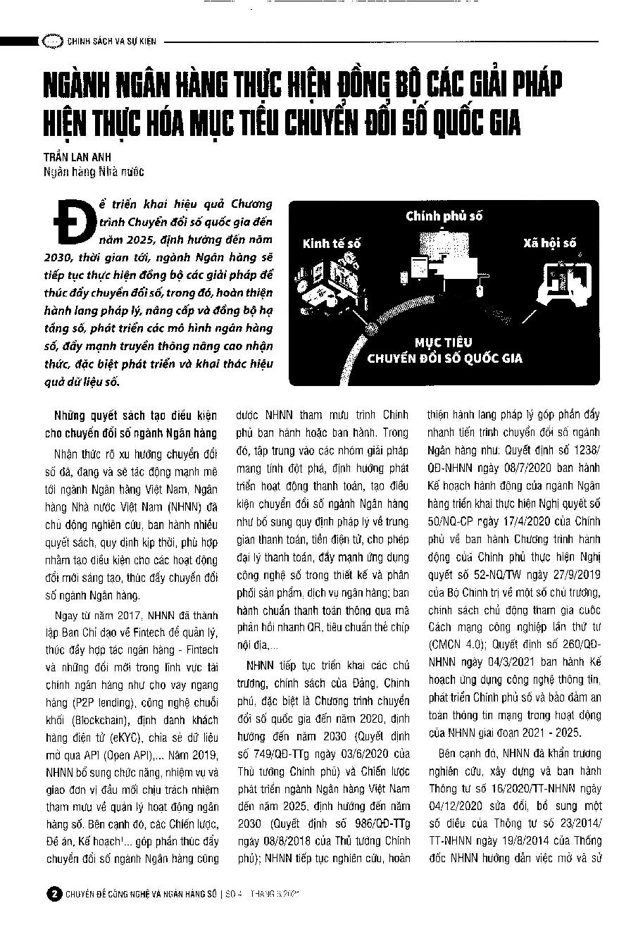 Ngành Ngân hàng thực hiện đồng bộ các giải pháp hiện thực hóa mục tiêu Chuyển đổi số quốc gia