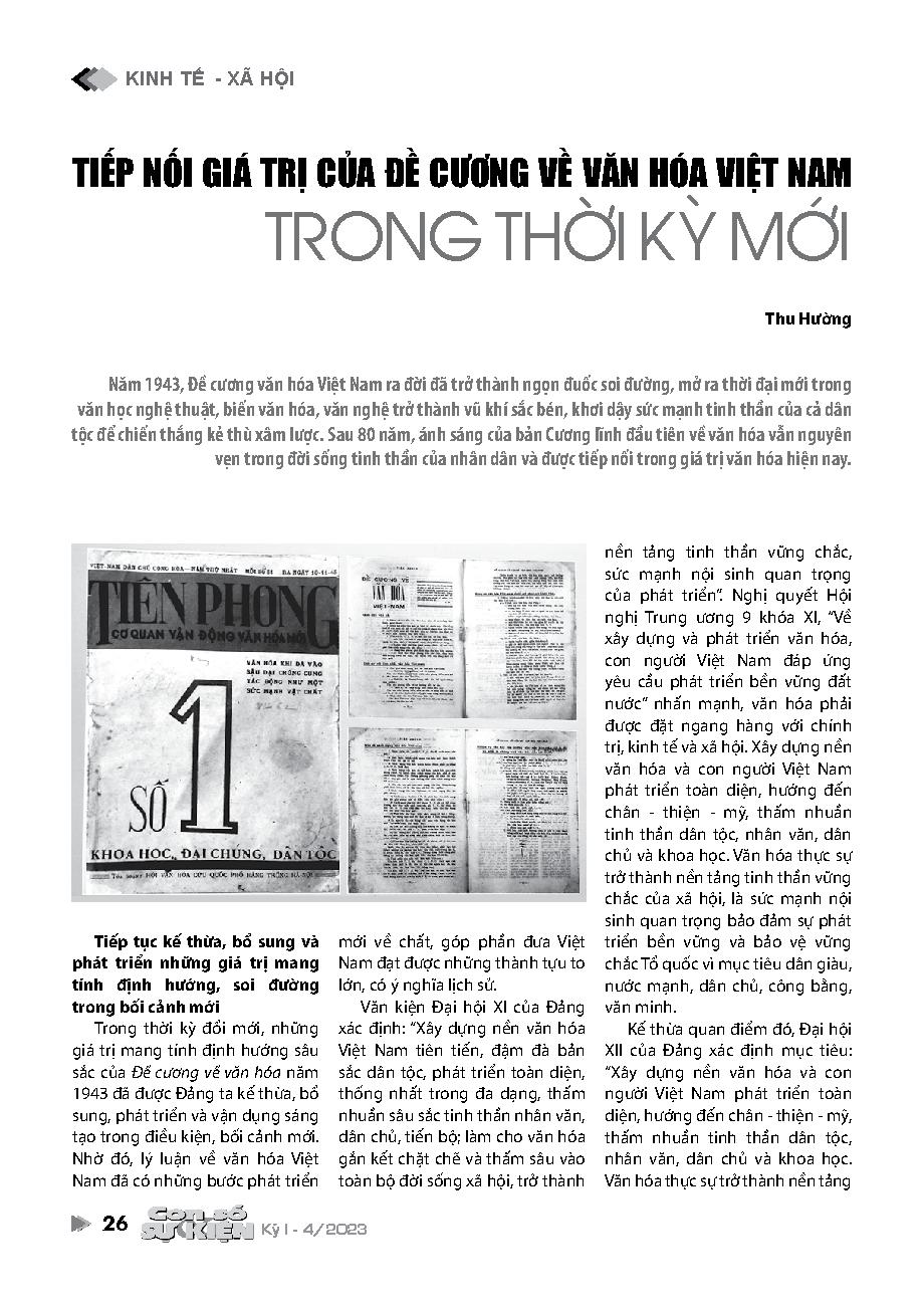 Tiếp nối giá trị của Đề cương về văn hóa Việt Nam trong thời kỳ mới = Continuing the value of the Outline on Vietnamese culture in the new period