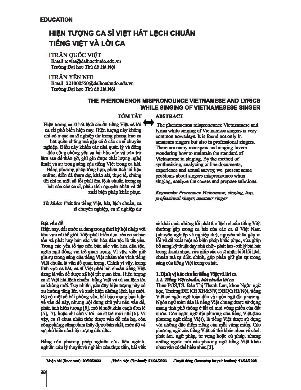 Tác giả: Trần Quốc Việt; Trần Yến Nhi;