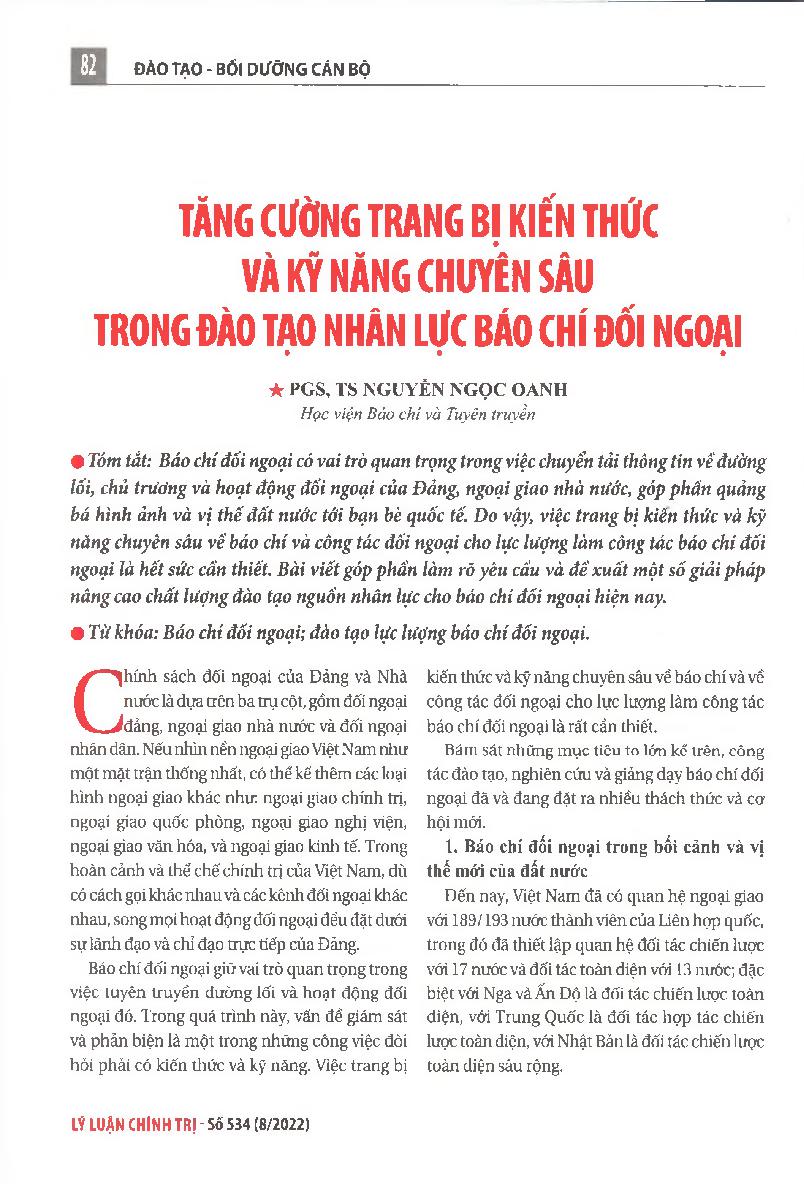 Tăng cường trang bị kiến thức và kỹ năng chuyên sâu trong đào tạo nhân lực báo chí đối ngoại = Improve in-depth knowledge and skills in human resources training for external journalism