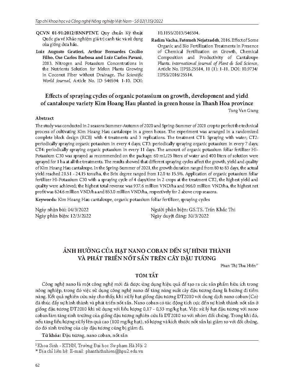 Ảnh hưởng của hạt nano coban đến sự hình thành và phát triển nốt sần trên cây đậu tương = Effects of coban nano particles in nodule formation and nodule development of soybean