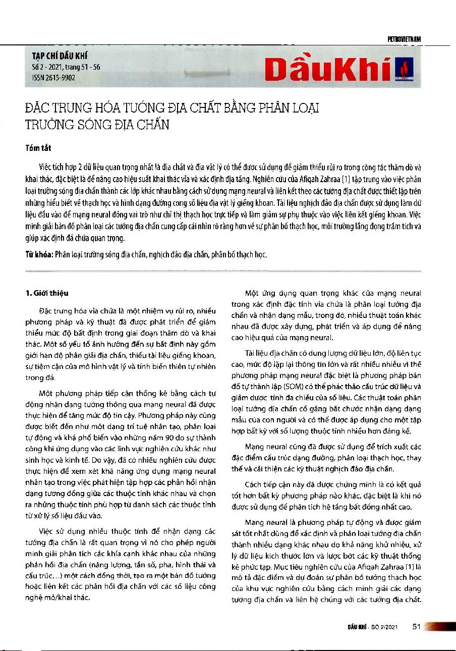 Đặc trưng hóa tướng địa chất bằng phân loại trường sóng địa chấn = Characterising geological facies using seismic waveform classification