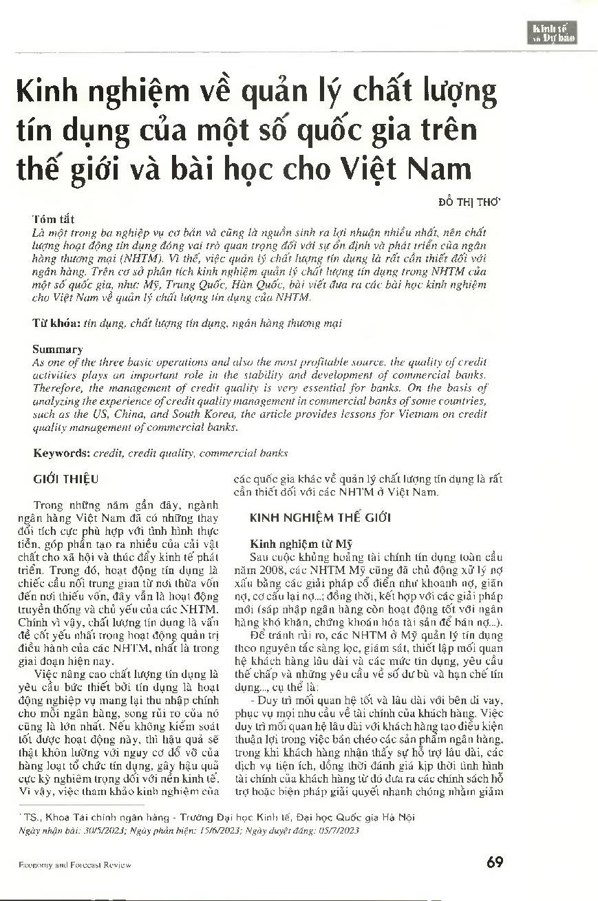 Kinh nghiệm về quản lý chất lượng tín dụng của một số quốc gia trên thế giới và bài học cho Việt Nam