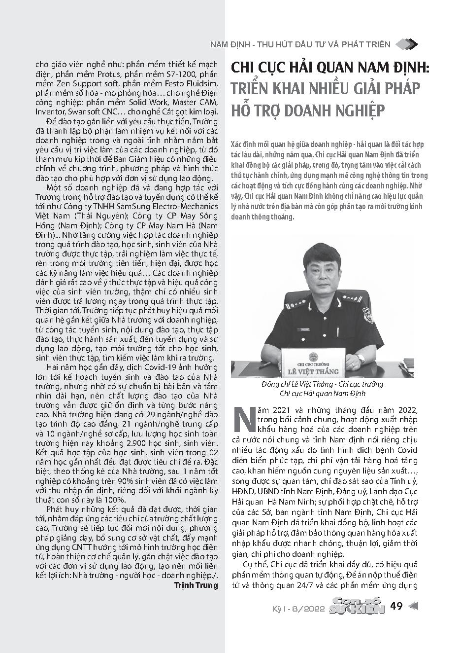 Chi cục Hải quan Nam Định: Triển khai nhiều giải pháp hỗ trợ doanh nghiệp = Nam Dinh Customs Branch: Deploying many solutions to support businesses