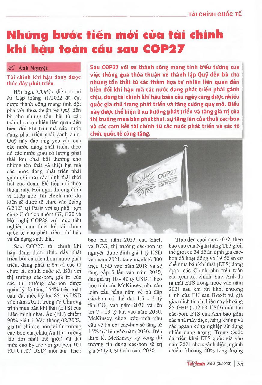 Những bước tiến mới của tài chính khí hậu toàn cầu sau COP27