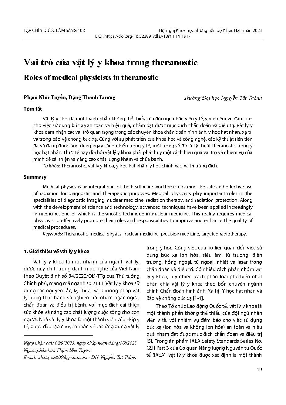 Vai trò của vật lý y khoa trong theranostic = Roles of medical physicists in theranostic