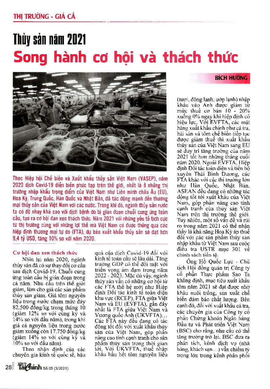 Thủy sản năm 2021: Song hành cơ hội và thách thức