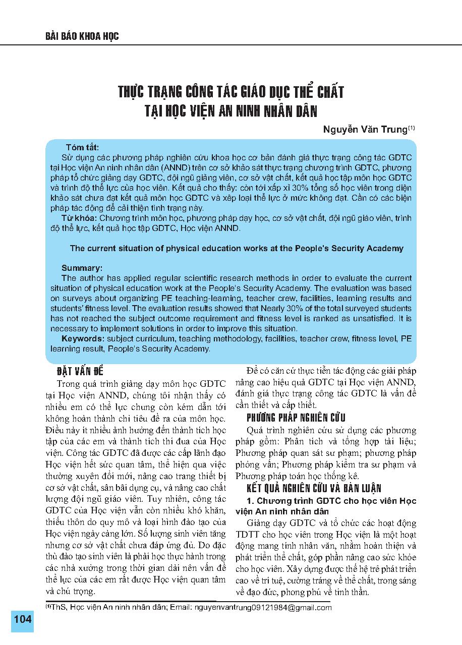 Thực trạng công tác giáo dục thể chất tại Học viện An ninh nhân dân = The current situation of physical education works at the People&; 39;s Security Academy