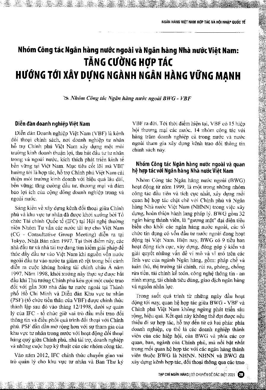 Nhóm Công tác Ngân hàng nước ngoài và Ngân hàng Nhà nước Việt Nam: Tăng cường hợp tác hướng tới xây dựng ngành Ngân hàng vững mạnh