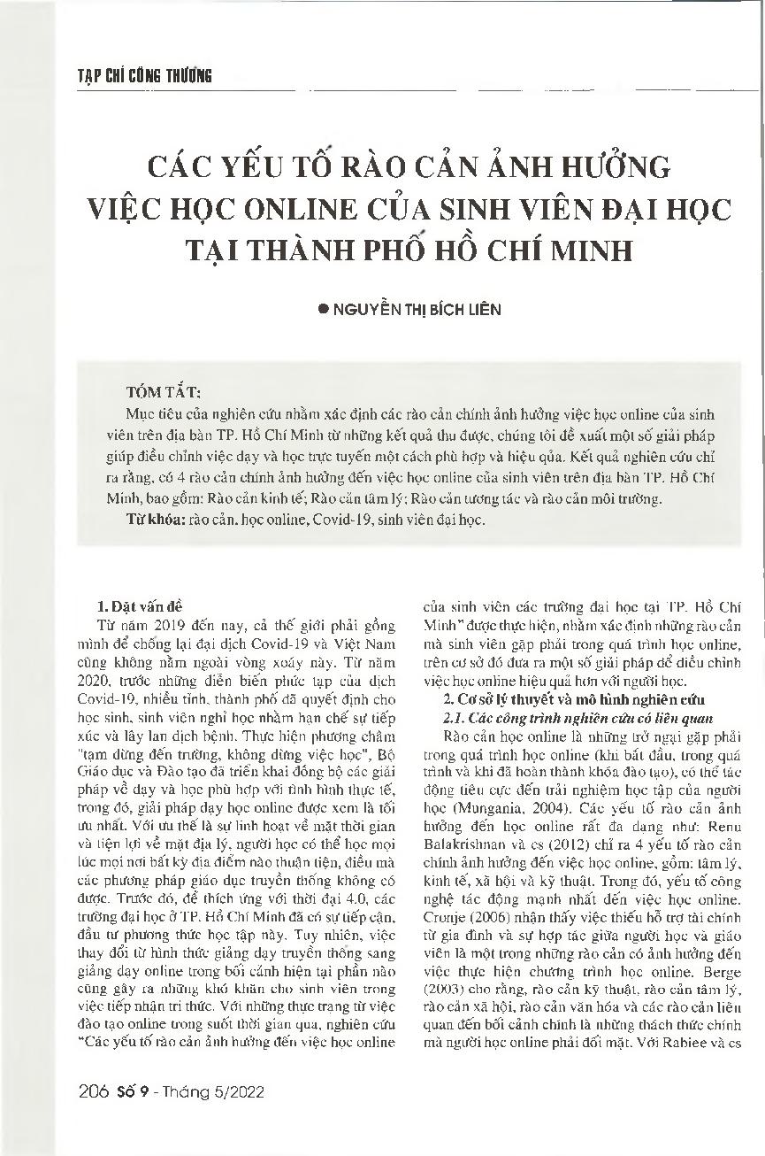 Các yếu tố rào cản ảnh hưởng việc học online của sinh viên đại học tại TP. Hồ Chí Minh = Barriers affecting students&; 39; online learning in Ho Chi Minh City