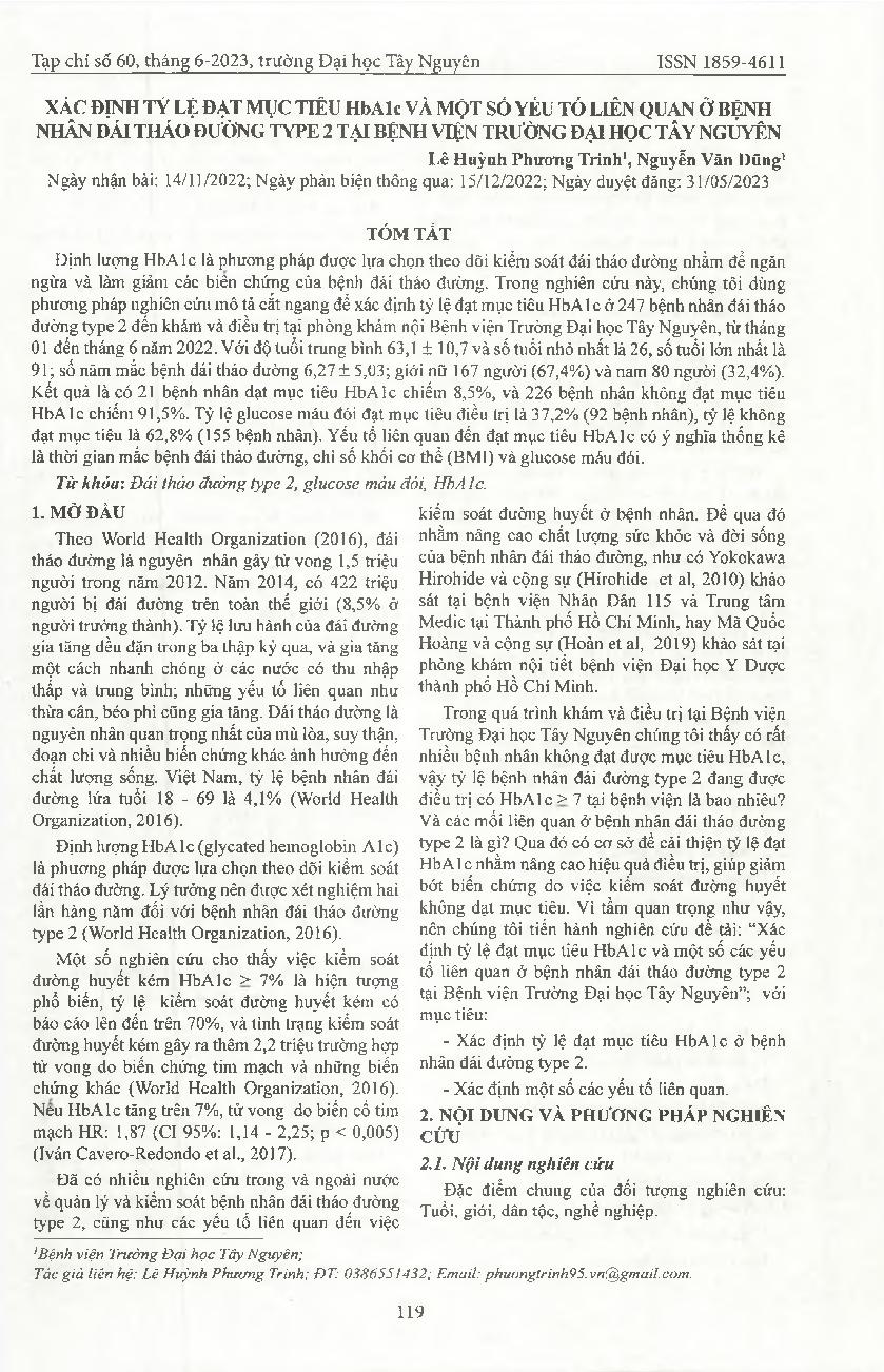 Xác định tỷ lệ đạt mục tiêu HbA1c và một số yếu tố liên quan ở bệnh nhân đái tháo đường type 2 tại Bệnh viện Trường Đại học Tây Nguyên