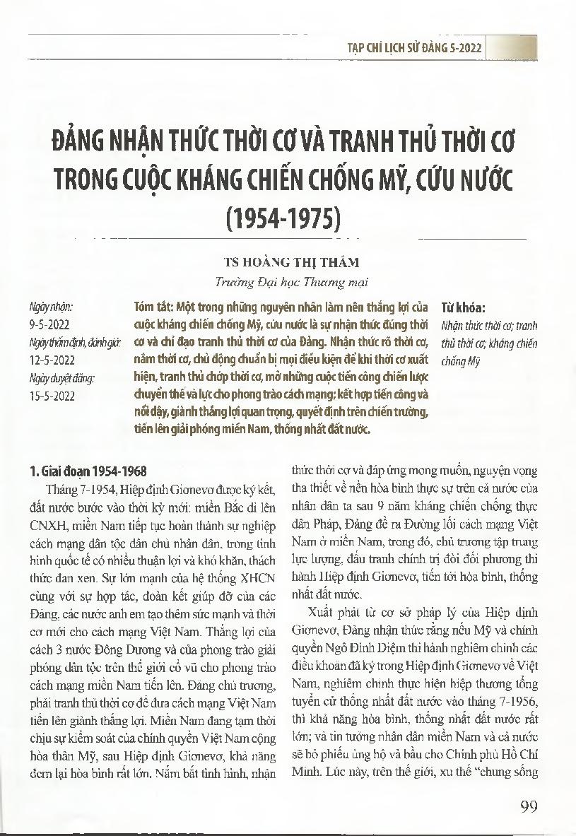 Đảng nhận thức thời cơ và tranh thủ thời cơ trong cuộc kháng chiến chống Mỹ, cứu nước (1954-1975)