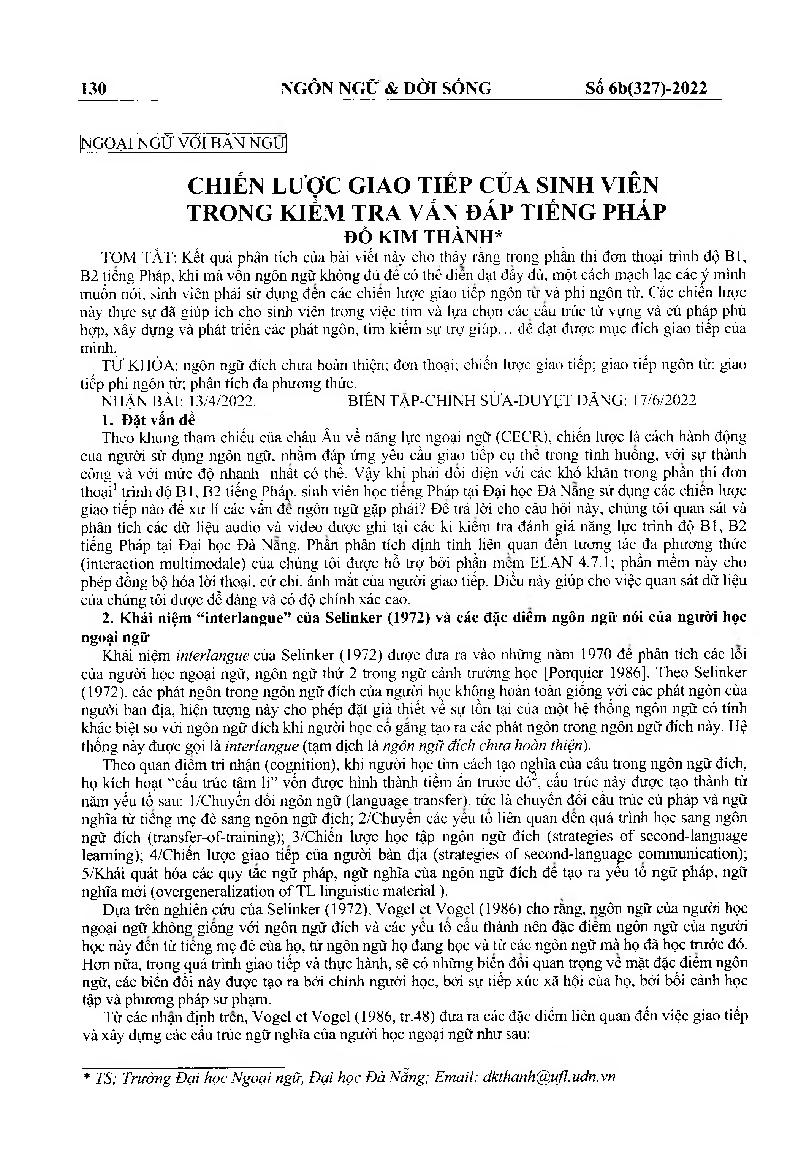 Chiến lược giao tiếp của sinh viên trong kiểm tra vấn đáp tiếng Pháp = Communication strategies of students during monologue tests in French