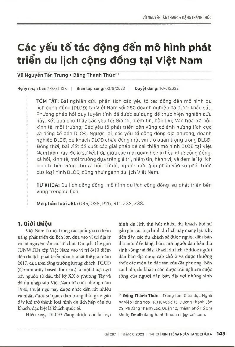 Các yếu tố tác động đến mô hình phát triển du lịch cộng đồng tại Việt Nam
