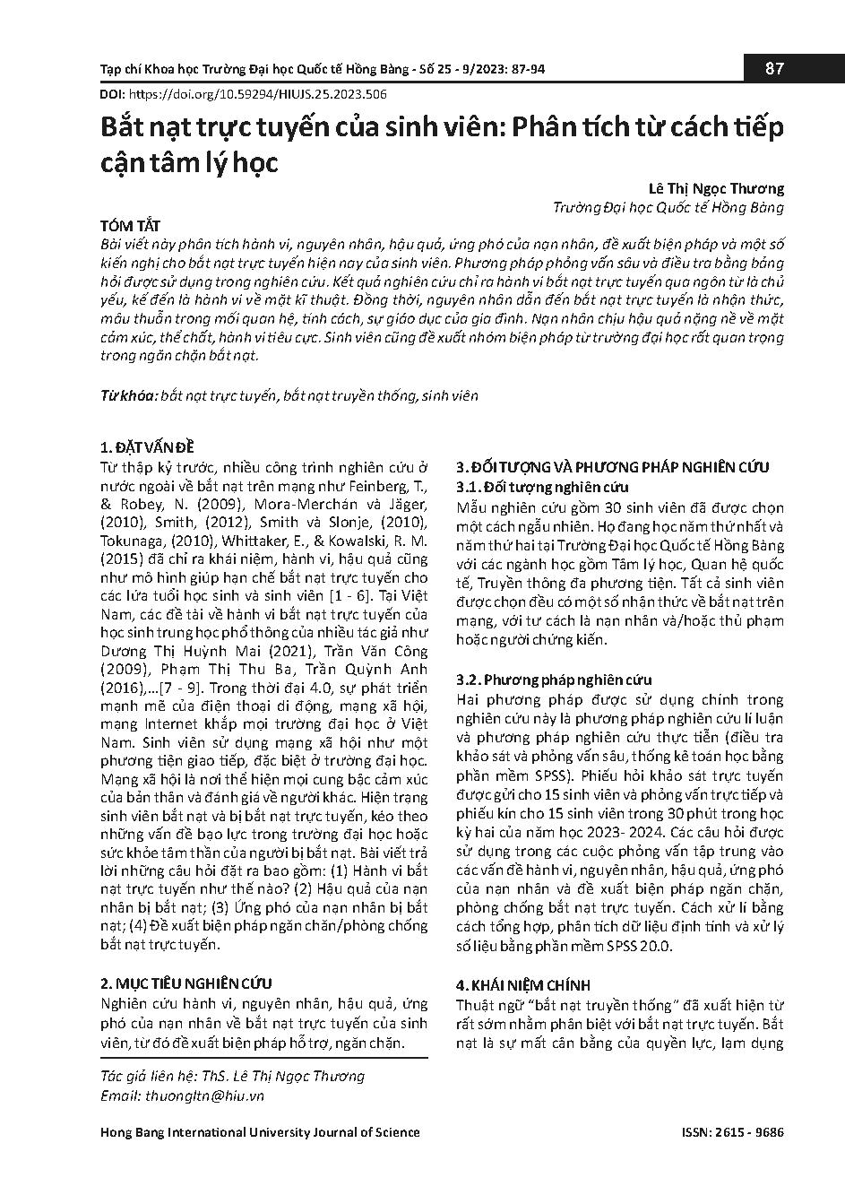 Bắt nạt trực tuyến của sinh viên: Phân tích từ cách tiếp cận tâm lý học