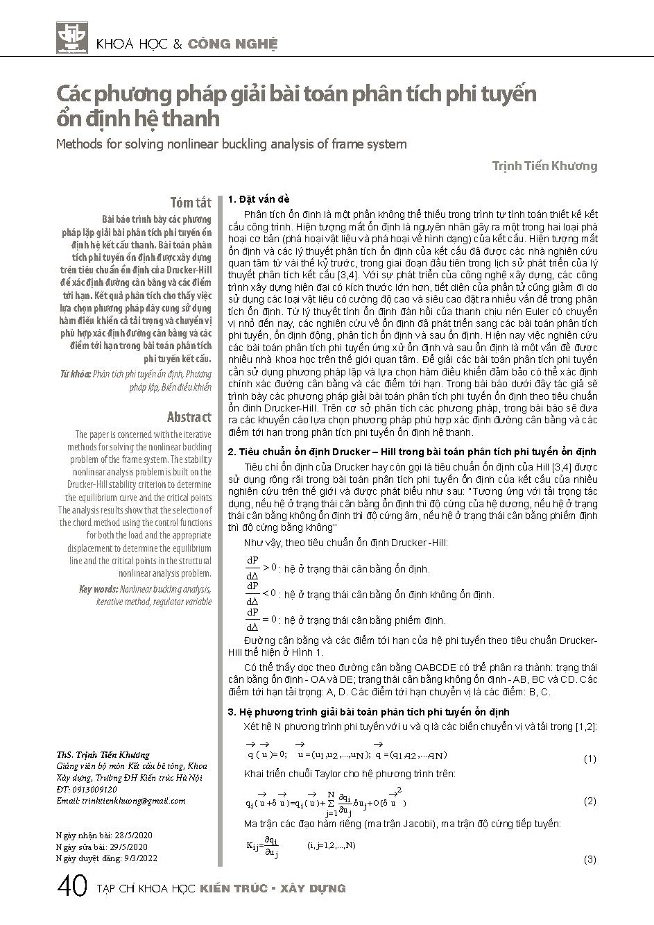 Các phương pháp giải bài toán phân tích phi tuyến ổn định hệ thanh = Methods for solving nonlinear buckling analysis of frame system