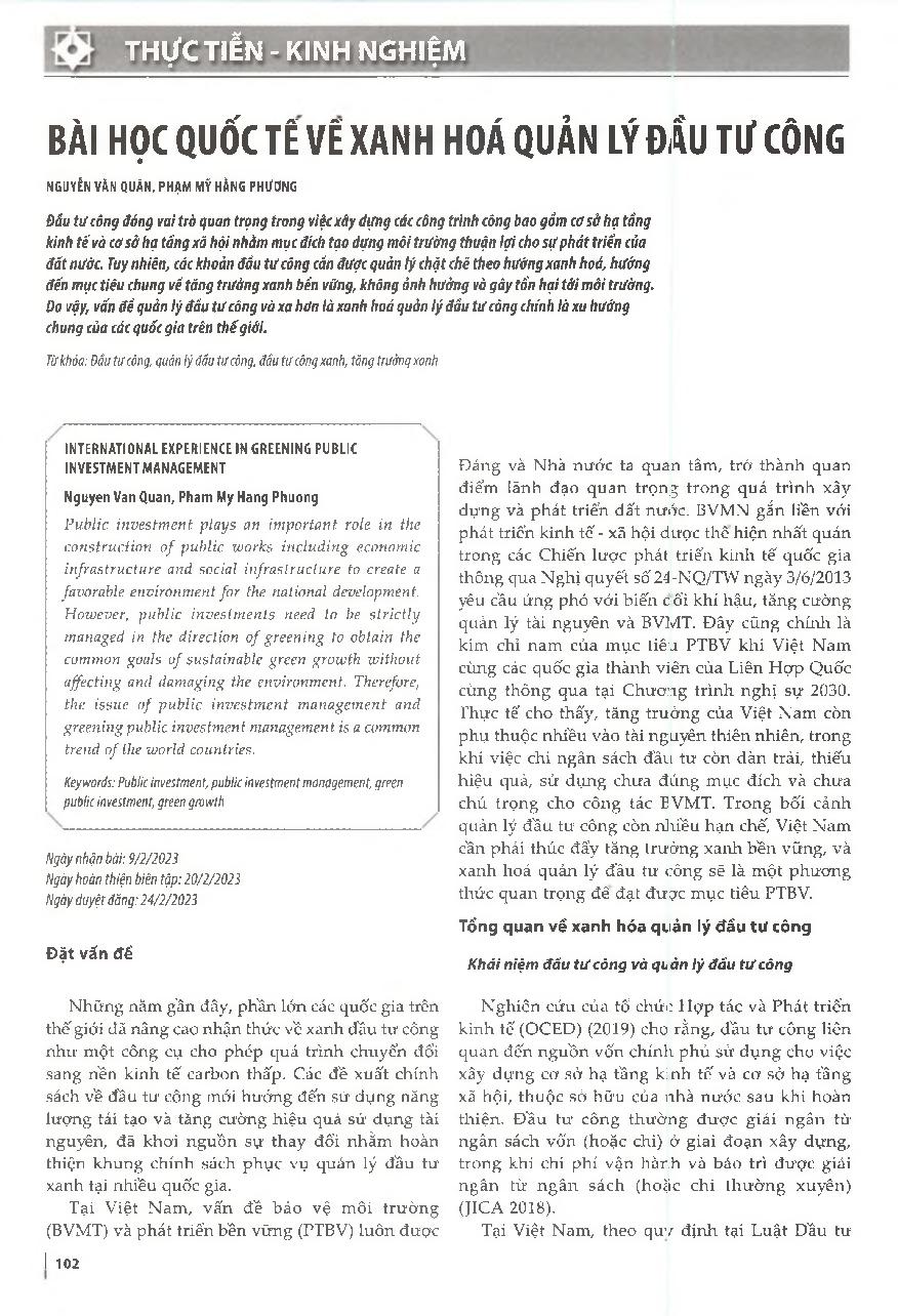 Bài học quốc tế về xanh hóa quản lý đầu tư công = International experience in greening public investment management
