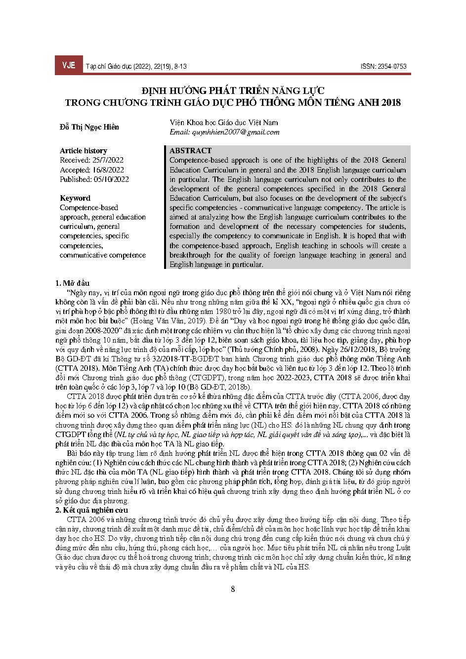 Định hướng phát triển năng lực trong chương trình giáo dục phổ thông môn tiếng anh 2018 = Orientation for capacity development in the general English curriculum 2018