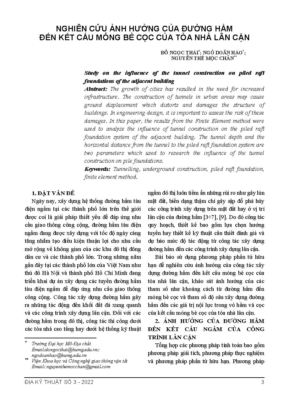 Nghiên cứu ảnh hưởng của đường hầm đến kết cấu móng bè cọc của tòa nhà lân cận