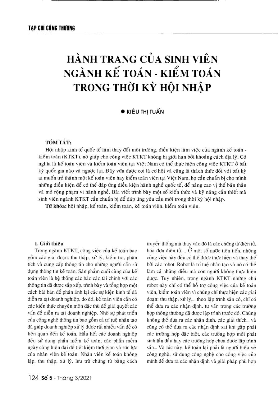 Hành trang của sinh viên ngành Kế toán - Kiểm toán trong thời kỳ hội nhập