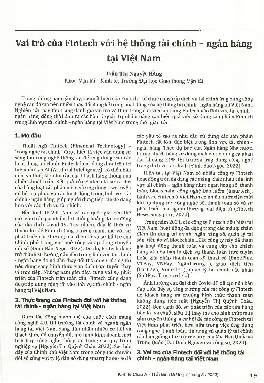 Vai trò của Fintech với hệ thống tài chính - ngân hàng tại Việt Nam
