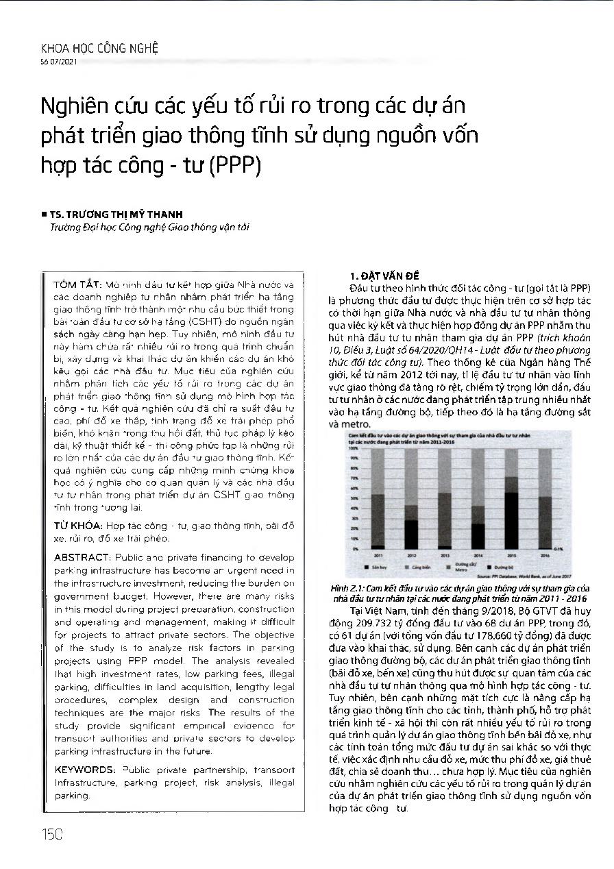 Nghiên cứu các yếu tố rủi ro trong các dự án phát triển giao thông tĩnh sử dụng nguồn vốn hợp tác công - tư (PPP)