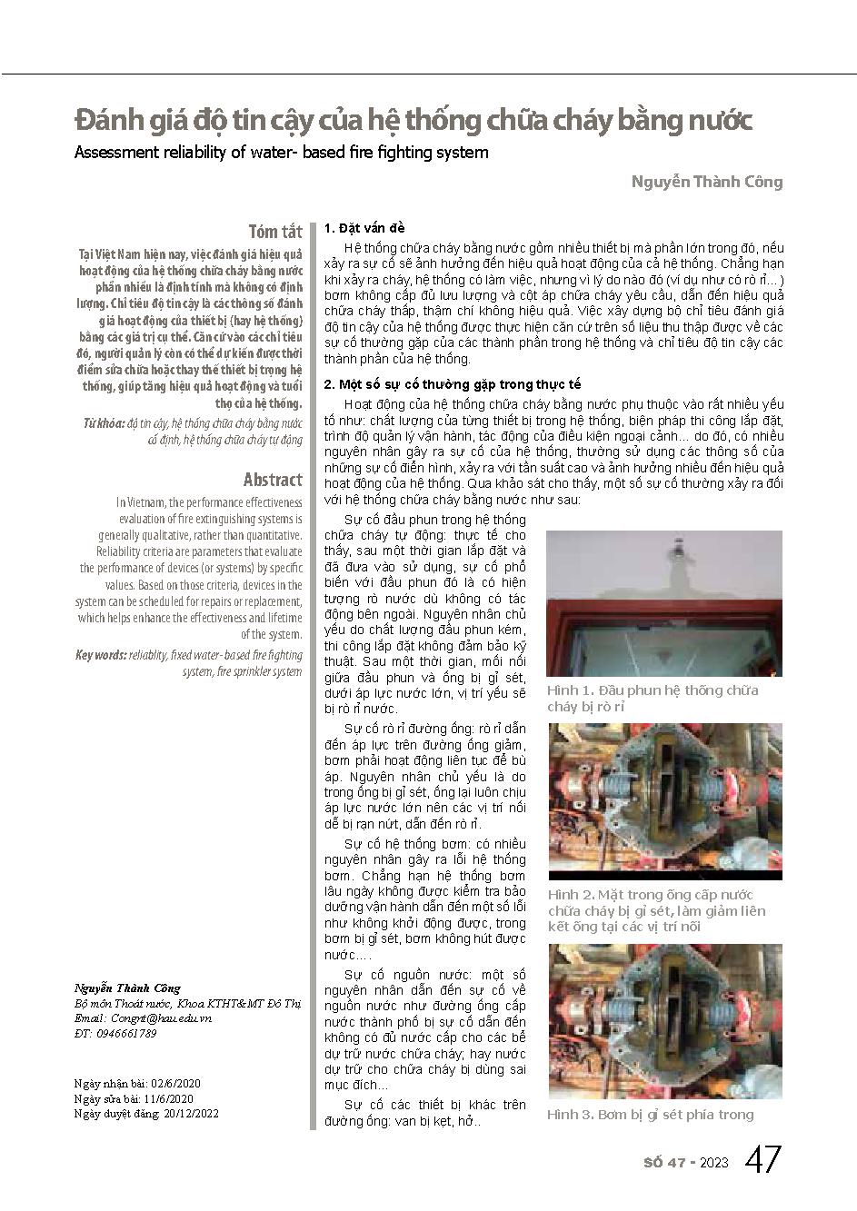 Đánh giá độ tin cậy của hệ thống chữa cháy bằng nước = Assessment reliability of water- based fire fighting system