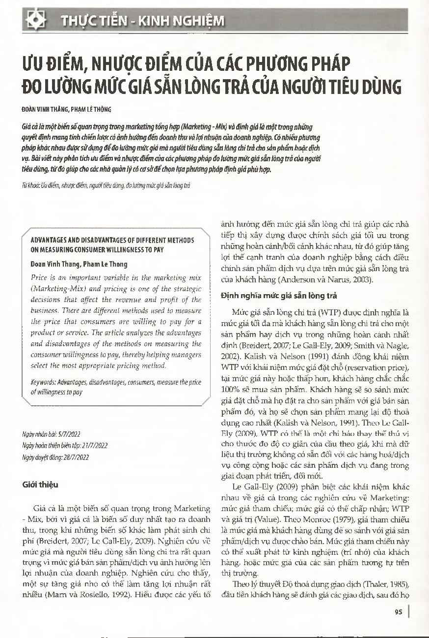 Ưu điểm, nhược điểm của các phương pháp đo lường mức giá sẵn lòng trả của người tiêu dùng = Advantages and disadvantages of different methods on measuring consumer willingness to pay