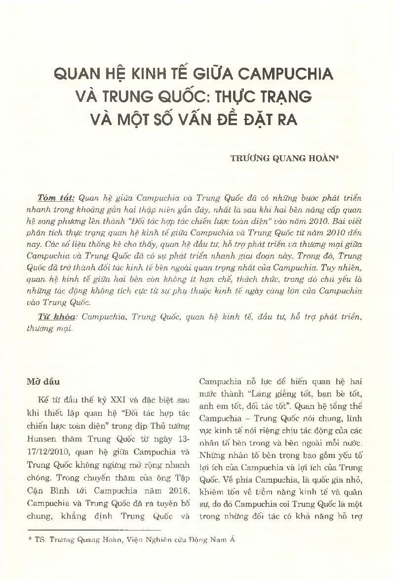 Quan hệ kinh tế giữa Campuchia và Trung Quốc: Thực trạng và một số vấn đề đặt ra
