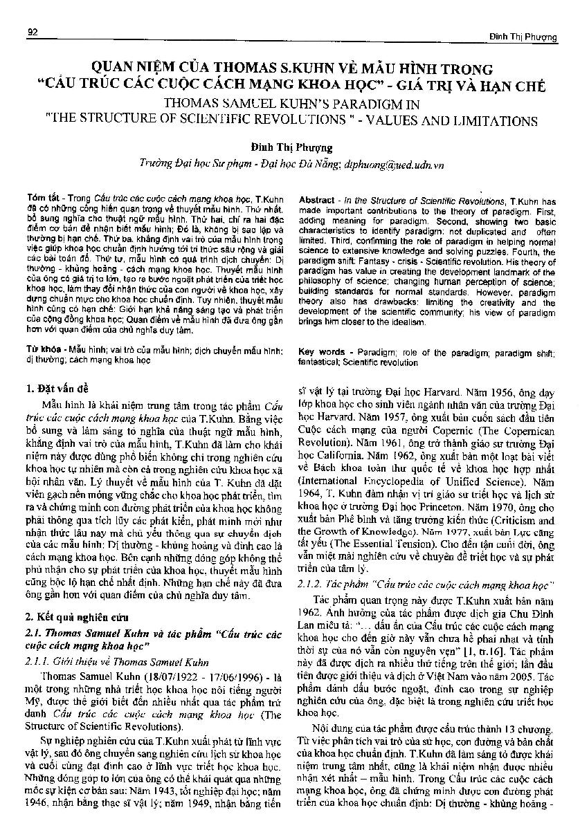 Quan niệm của Thomas S.Kuhn về mẫu hình trong “Cấu trúc các cuộc cách mạng khoa học” - giá trị và hạn chế = Thomas samuel kuhn’s paradigm in "the structure of scientific revolutions" - values and limitations