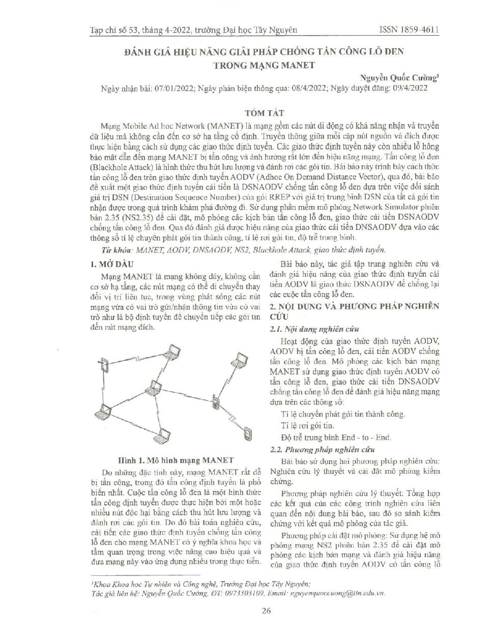 Đánh giá hiệu năng giải pháp chống tấn công lỗ đen trong mạng MANET = Performance evaluation of the solution prevent blackhole attacks in MANET
