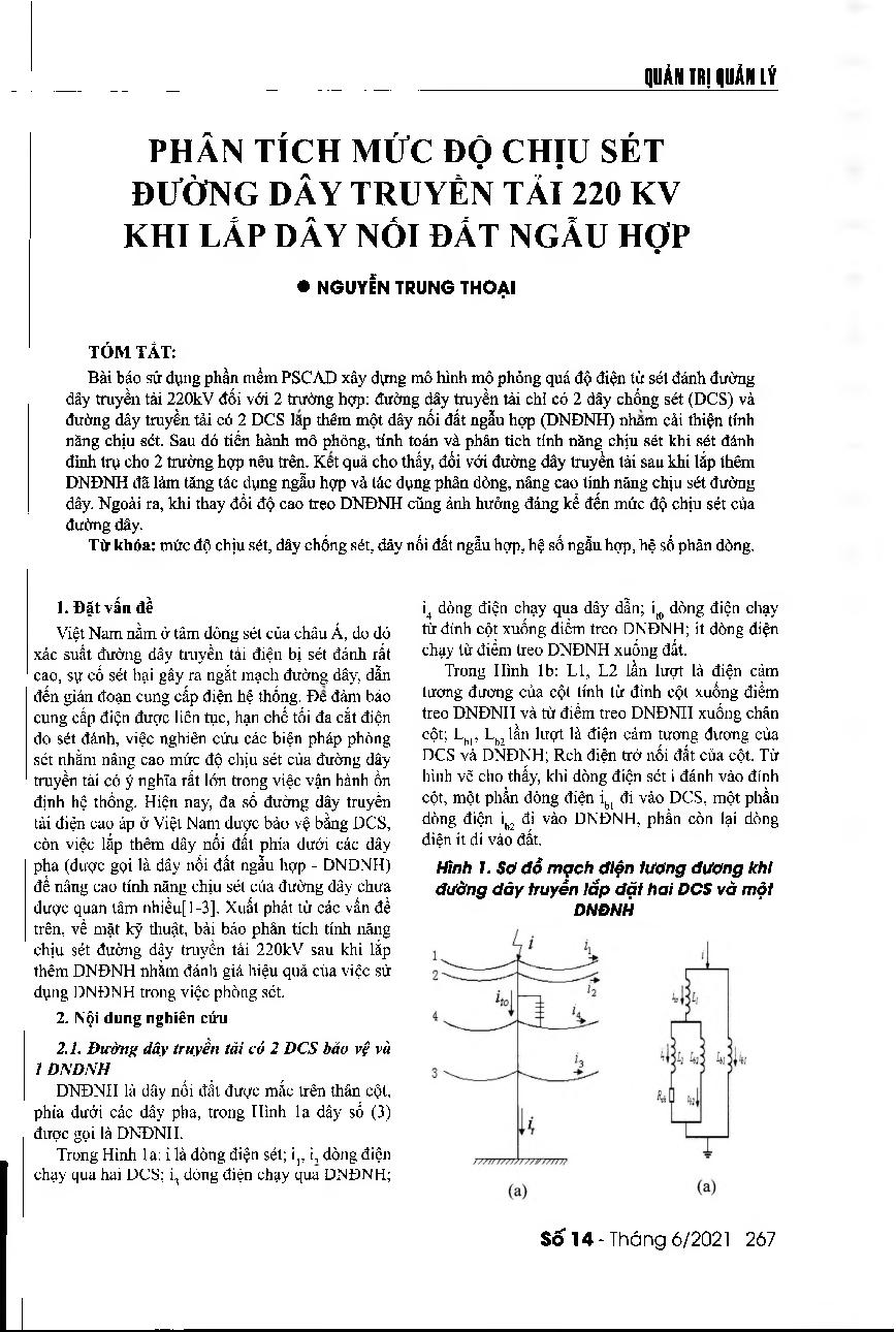 Phân tích mức độ chịu sét đường dây truyền tải 220kv khi lắp dây nối đất ngẫu hợp = Analysis of lightning withstand levels for 220kV transmission lines when installing coupling ground wire