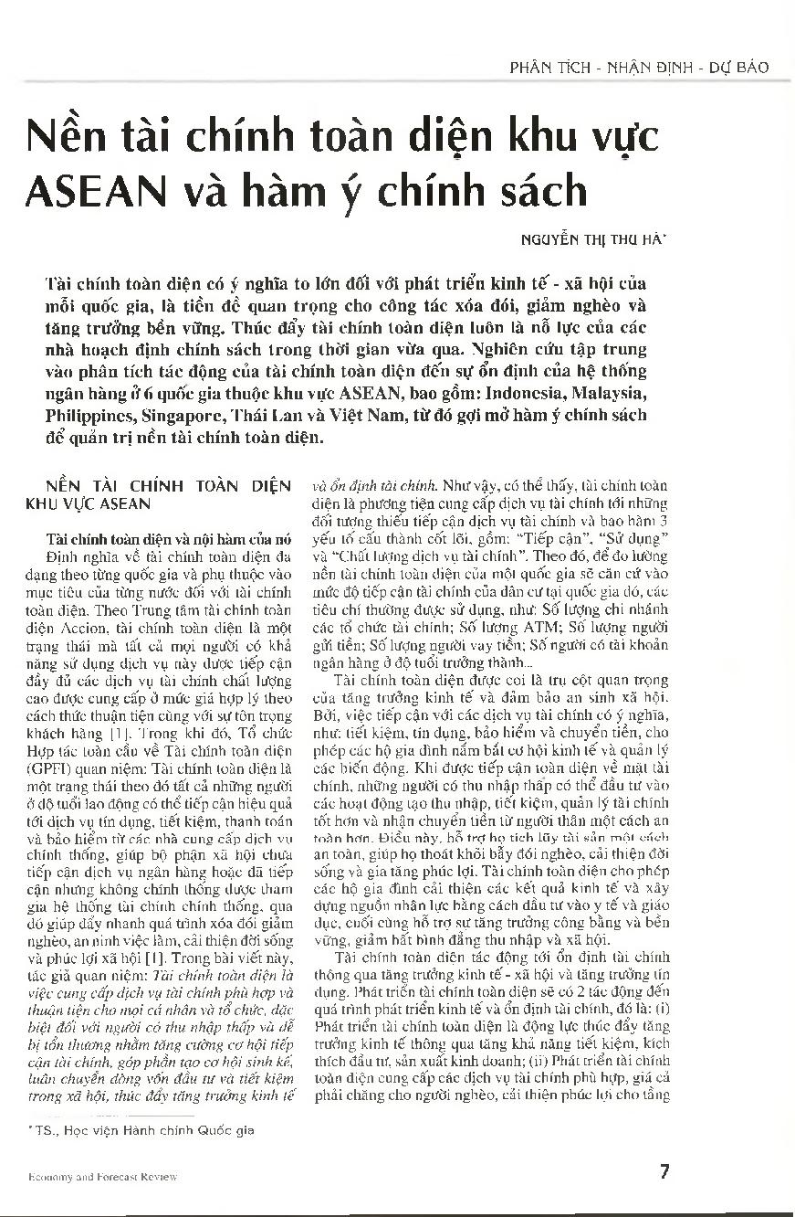Nền tài chính toàn diện khu vực ASEAN và hàm ý chính sách