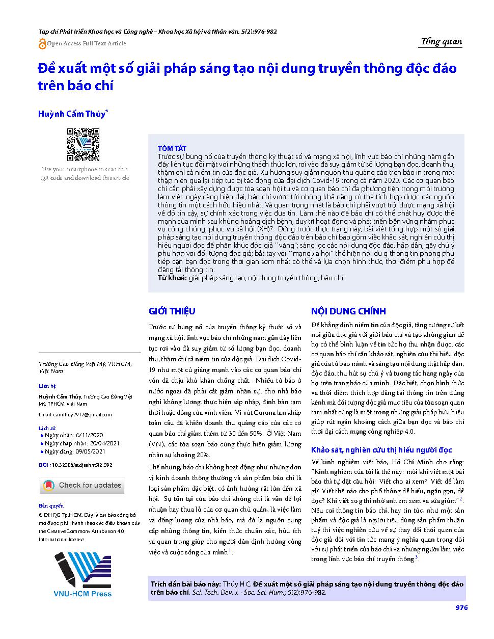 Đề xuất một số giải pháp sáng tạo nội dung truyền thông độc đáo trên báo chí