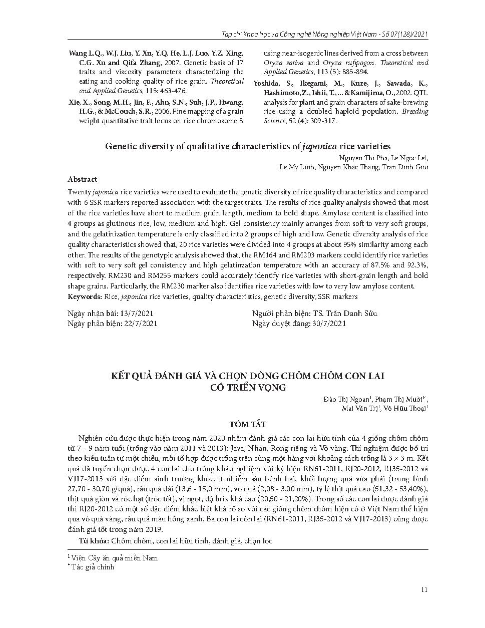 Kết quả đánh giá và chọn dòng chôm chôm con lai có triển vọng = Evaluation and selection of promising rambutan hybrids