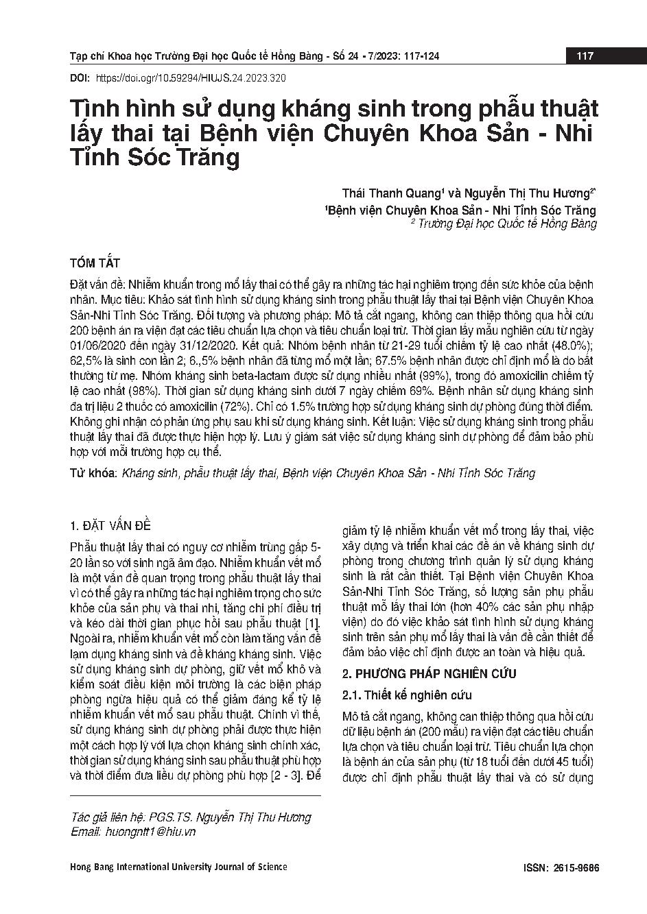 Tình hình sử dụng kháng sinh trong phẫu thuật lấy thai tại Bệnh viện Chuyên Khoa Sản - Nhi Tỉnh Sóc Trăng