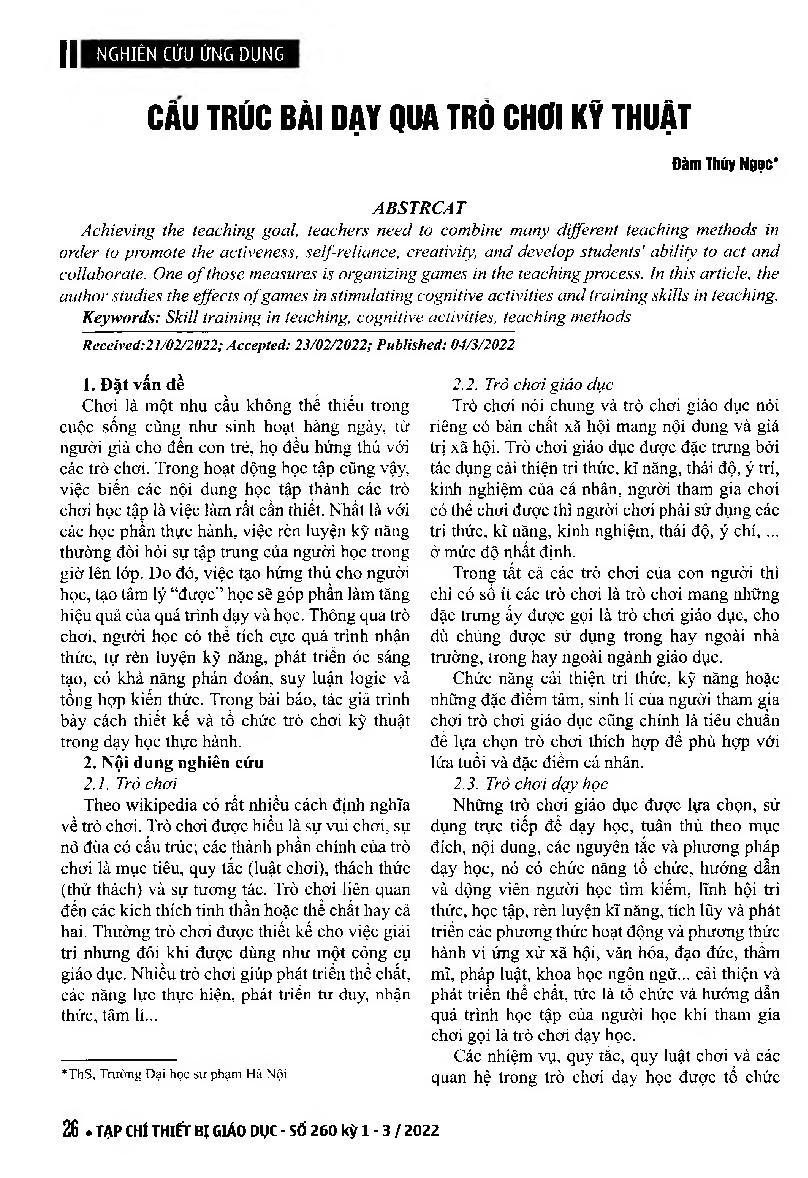 Cấu trúc bài dạy qua trò chơi kỹ thuật = Structure of lessons through technical games