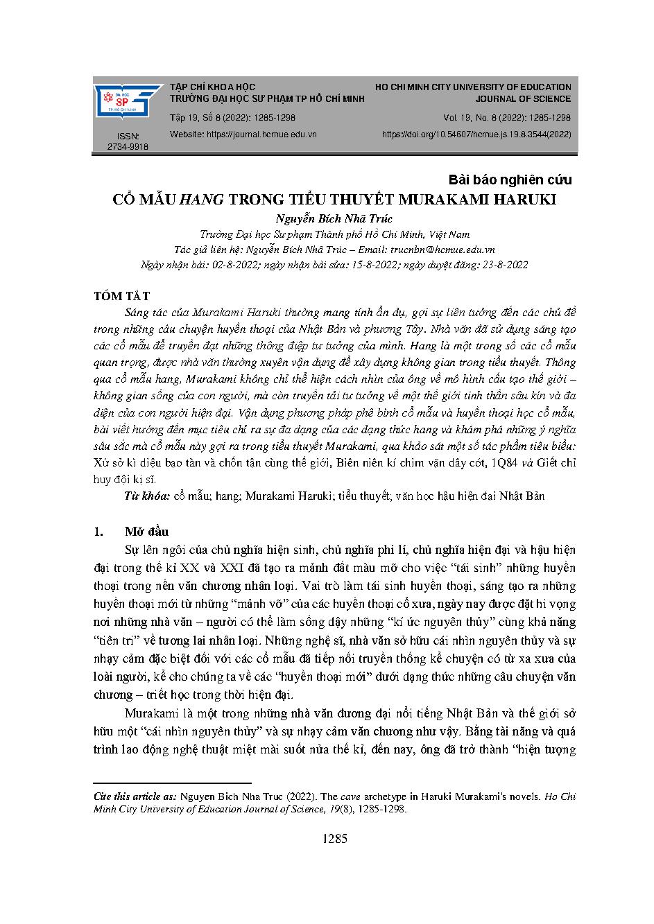 Cổ mẫu hang trong tiểu thuyết Murakami haruki = The cave archetype in haruki murakami&; 39;s novels