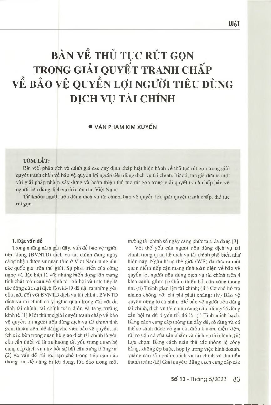 Bàn về thủ tục rút gọn trong giải quyết tranh chấp về bảo vệ quyền lợi người tiêu dùng dịch vụ tài chính