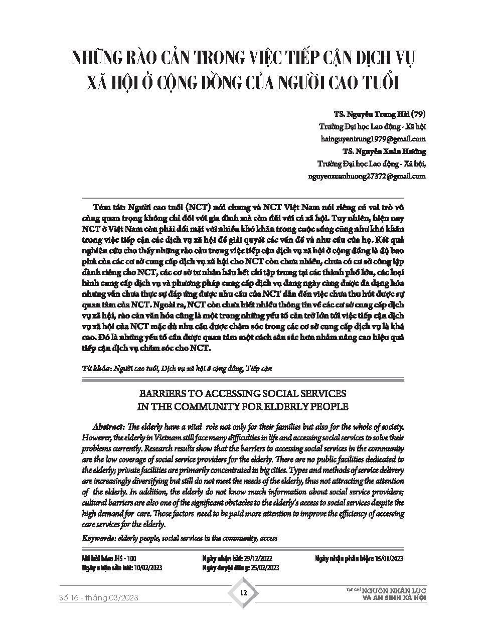 Những rào cản trong việc tiếp cận dịch vụ xã hội ở cộng đồng của người cao tuổi = Barriers to accessing social services in the community for elderly people