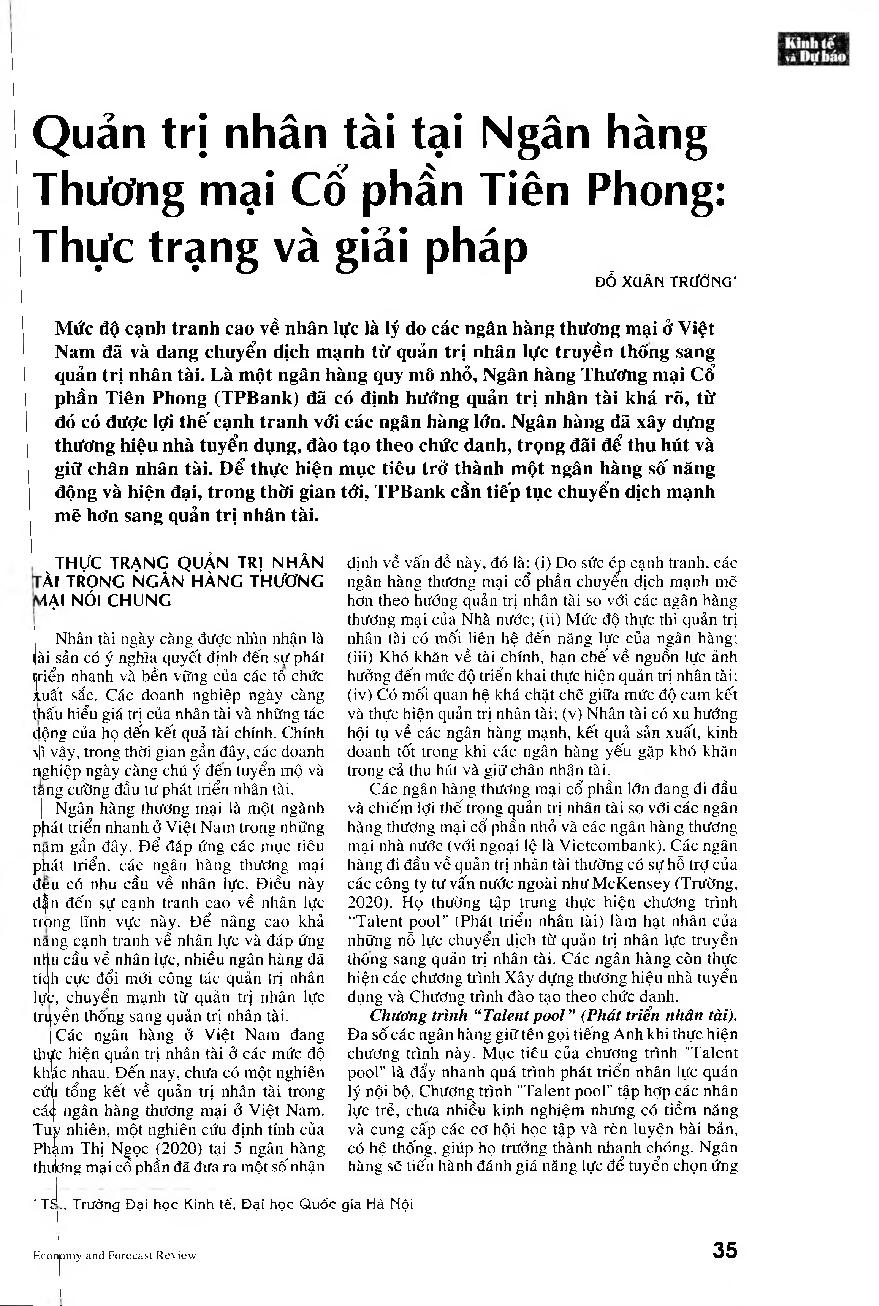 Quản trị nhân tài tại Ngân hàng Thương mại cổ phần Tiên Phong: Thực trạng và giải pháp