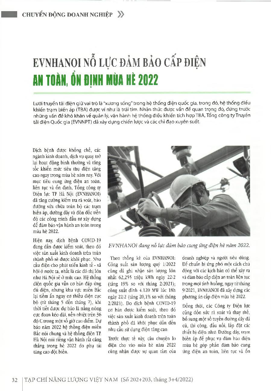 EVNHANOI nỗ lực đảm bảo cấp điện an toàn, ổn định mùa hè 2022 = EVNHANOI strives to ensure safe and stable power supply in the summer of 2022