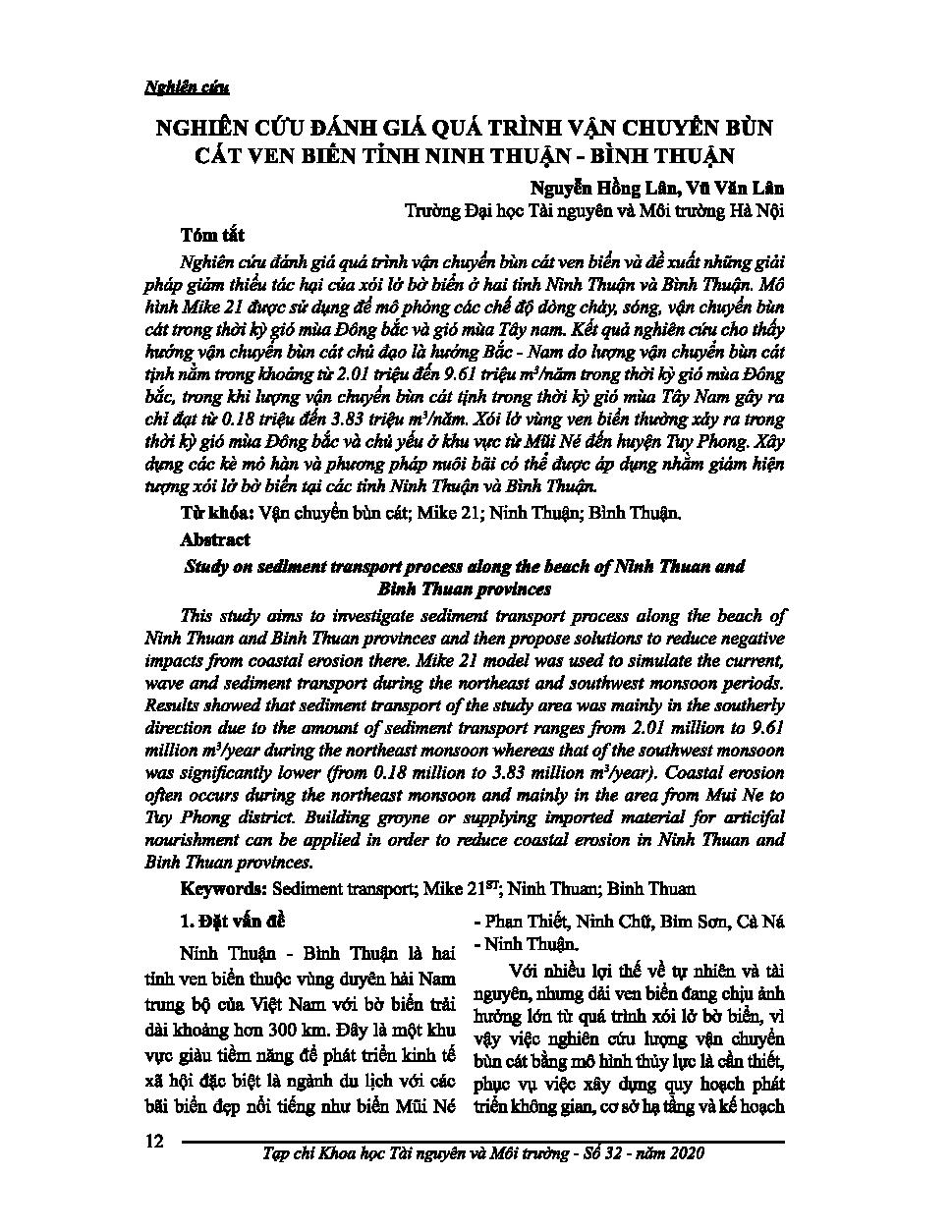 Nghiên cứu đánh giá quá trình vận chuyển bùn cát ven biển tỉnh Ninh Thuận - Bình Thuận = Study on sediment transport process along the beach of Ninh Thuan and Binh Thuan provinces