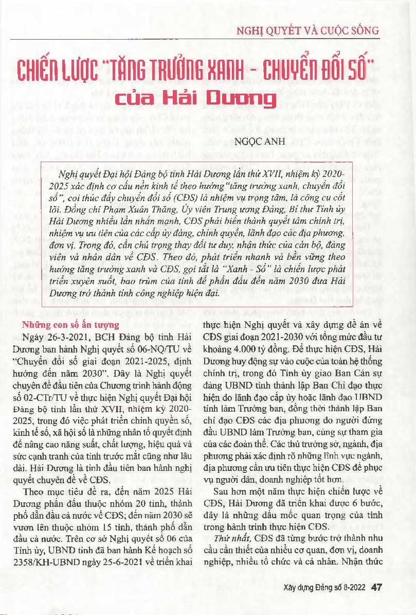 Chiến lược “Tăng trưởng xanh - Chuyển đổi số” của Hải Dương