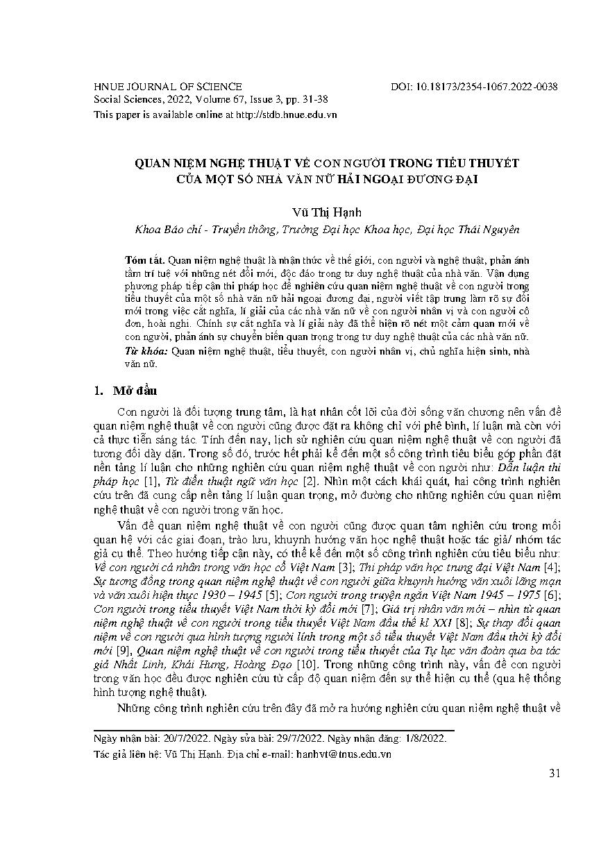 Quan niệm nghệ thuật về con người trong tiểu thuyết của một số nhà văn nữ hải ngoại đương đại = Conception about human in modern Vietnamese novels by some overseas female writers