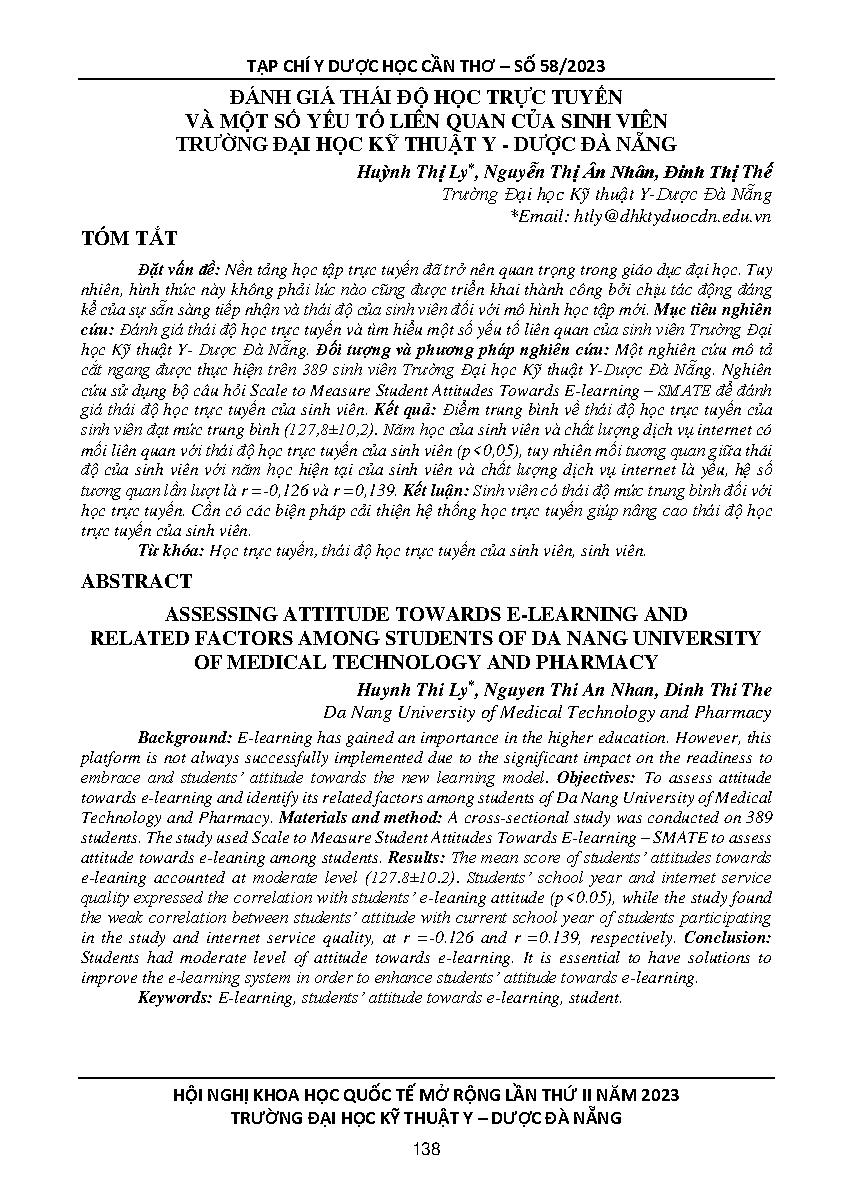Đánh giá thái độ học trực tuyến và một số yếu tố liên quan của sinh viên Trường Đại học Kỹ thuật Y - Dược Đà Nẵng